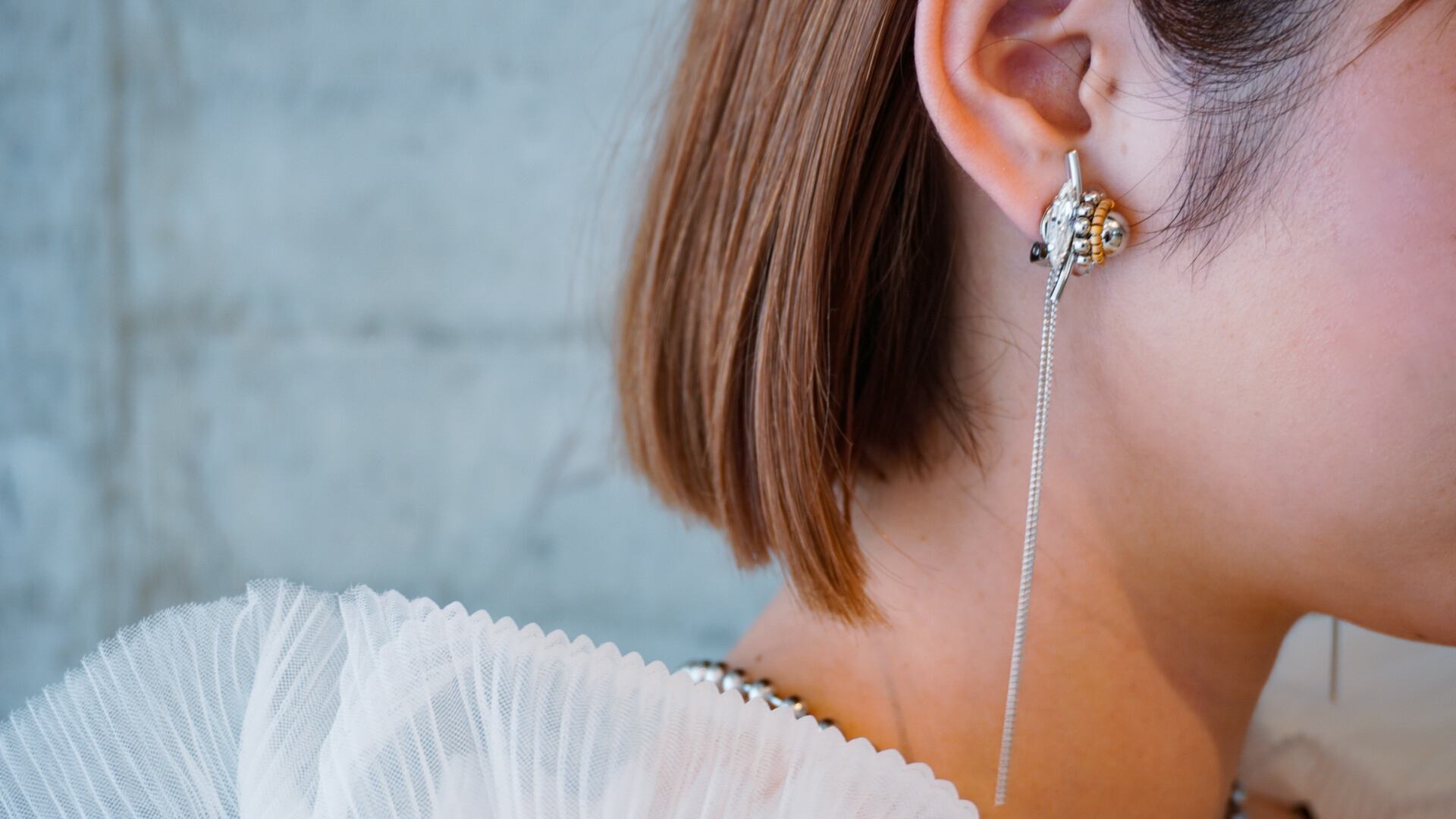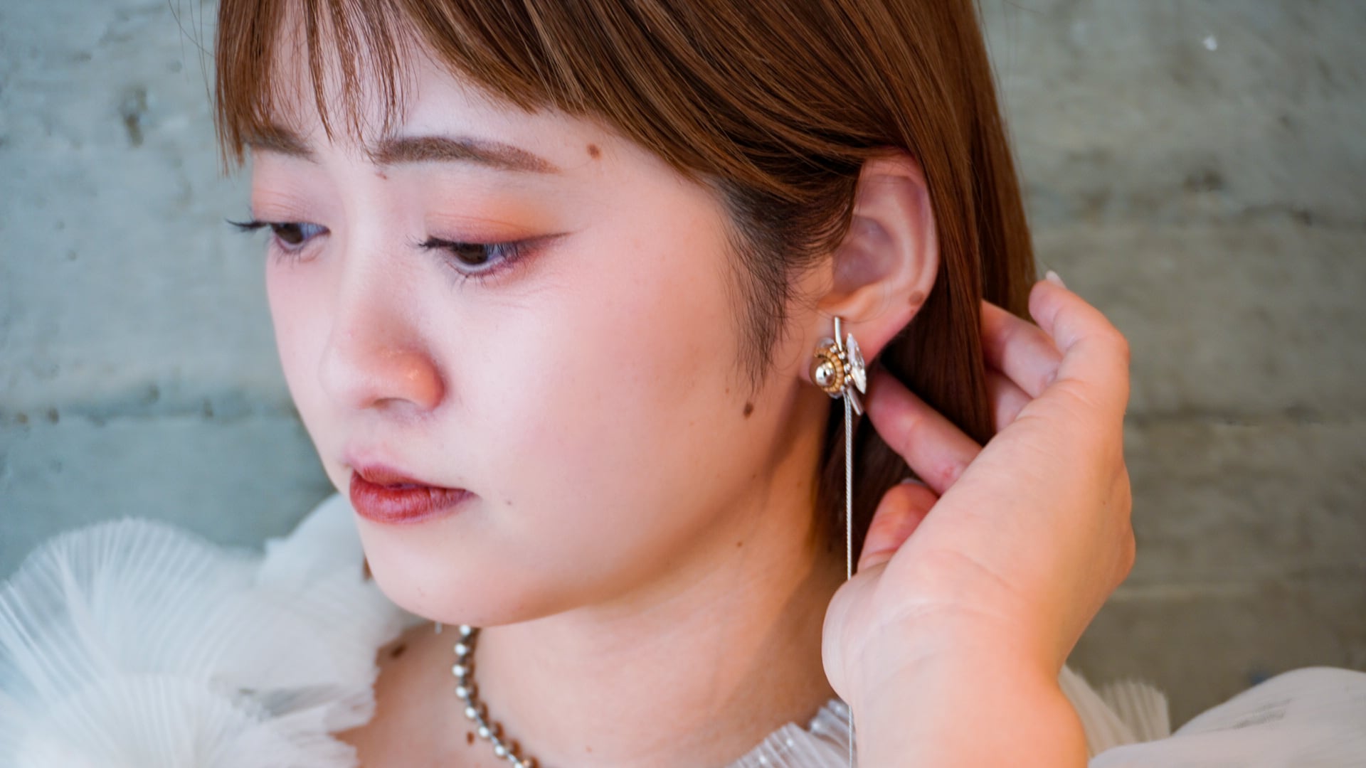 クリスタルはその透明感と輝きが魅力で、身につける人に上品さを与えます。ナベット形状のデザインは、顔まわりを華やかに演出し、キリッとした印象を与えるため、一層魅力的です。