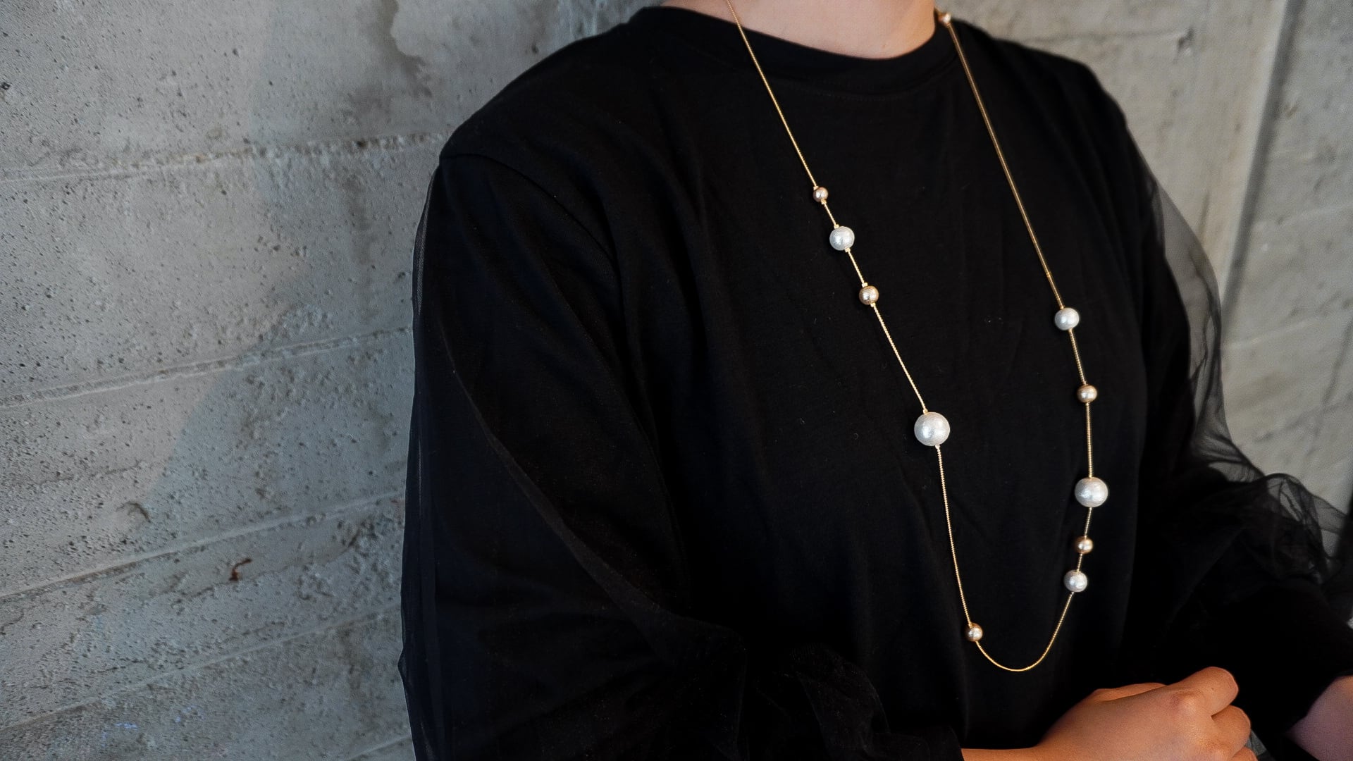 軽やかでエレガントな印象を与える【コットンパール ロングネックレス】