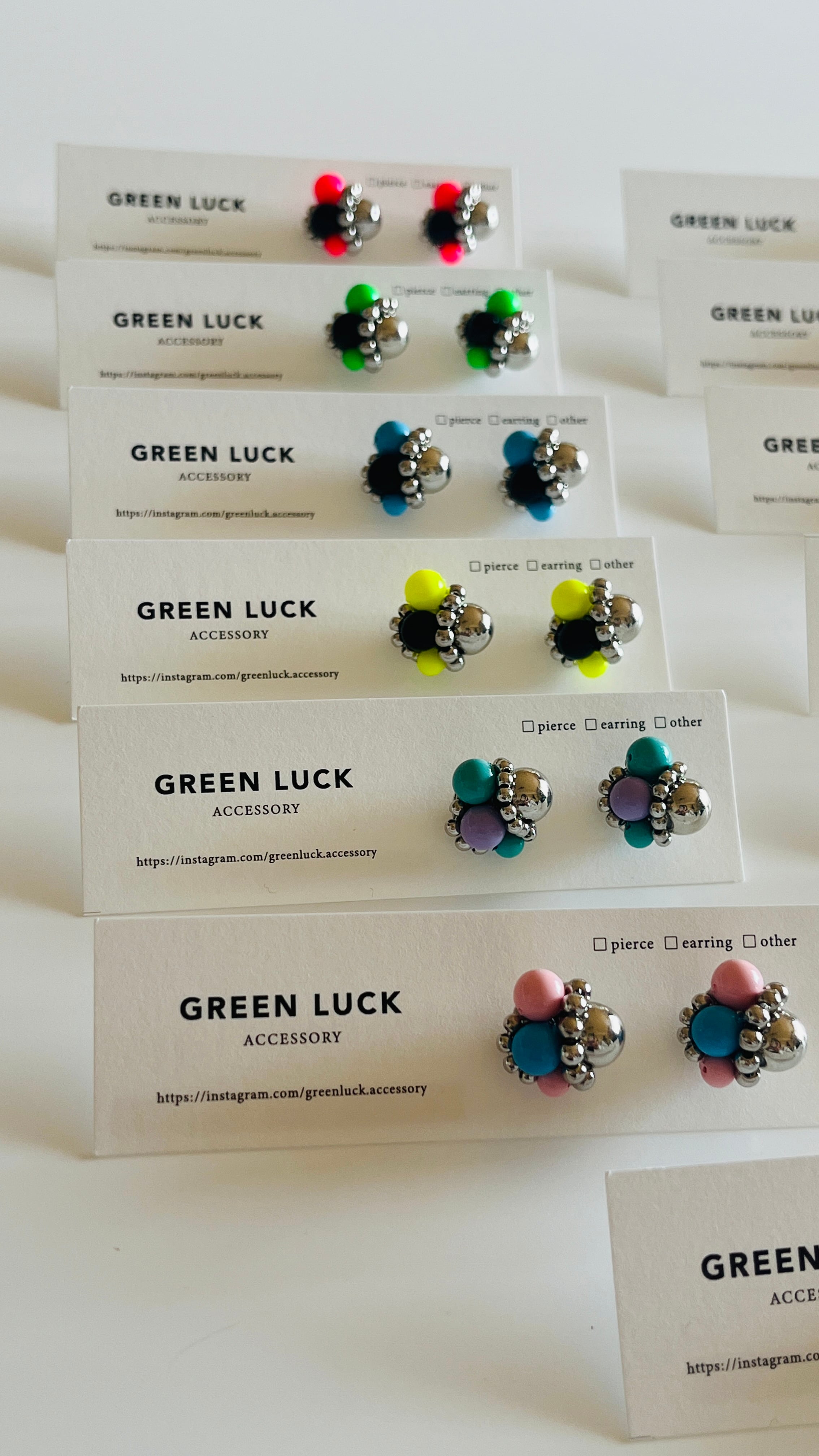 多彩な色合いで、ファッションのアクセントとして活躍するピアスです。丸玉のデザインが特徴的で、シンプルながらも存在感があり、日常使いから特別なシーンまで幅広く楽しめます。